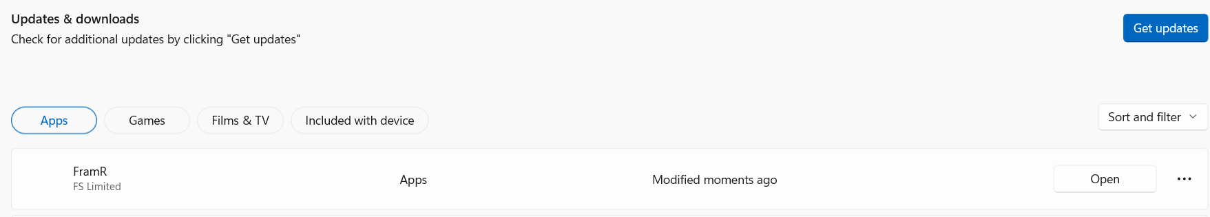In the Library you will see if FramR has an update available. Click "Get updates" to get the latest update.
