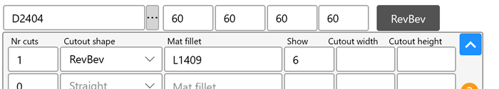 If the matboard contains Multiple Cutouts containing more than one mat fillet, enter the second fillet on the row below, also stating the width and height for it.