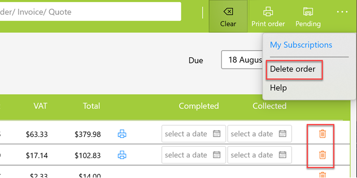 It's also possible to delete jobs from an order, or delete a complete order. Deleting an order will delete all jobs associated with that order.