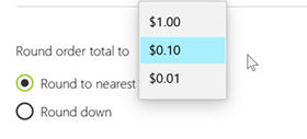 FramR provides the ability to round the Order total to 0.01, 0.10 or 1.00.