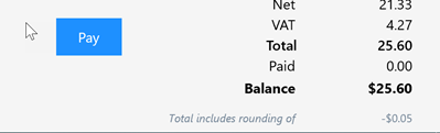 The rounding amount is displayed on the bottom of the Order. The amount is also displayed on the printed receipt for the customer.