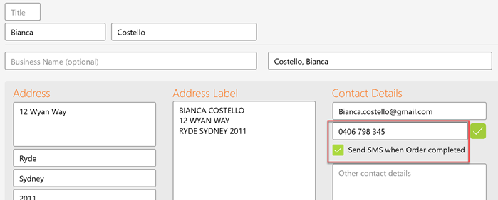 Setting up SMS is simple; SMS are then sent automatically when an orders are completed.