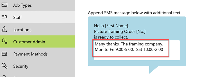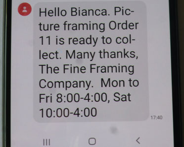 Automatic SMS when an order is completed saves you time, offers great customer service and ensures that your framing jobs are picked up and you get paid promptly. Automatic SMS when an order is completed addresses a number of issues framers face including: