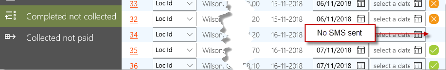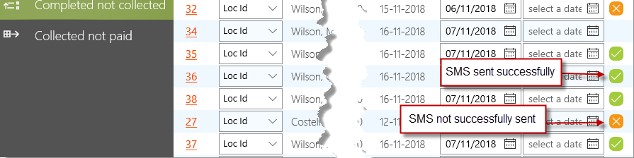 Then go to Oustanding completed not collected. In here you can see the SMS status of the job. SMSs' that were correctly sent will be green and incorrectly sent will be orange.