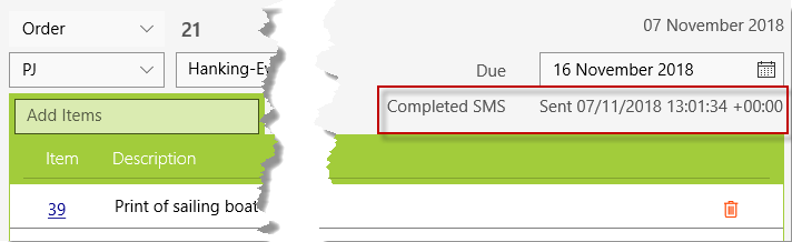 Orders that have all their jobs marked as completed will also display the result on the order form if that customer has elected to be notified completed by SMS.