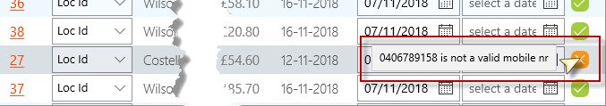 FramR will also check that the number entered is a valid number format for your region. If the number is valid a green checkbox will appear to the right of the number. If the number cannot be validated you will see an orange question mark. This doesn't necessarily mean the number is not valid, just that it could not be validated.