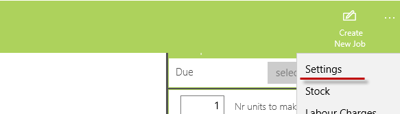 From the Job Form click on the Elipses on the right of the toolbar and select Settings.