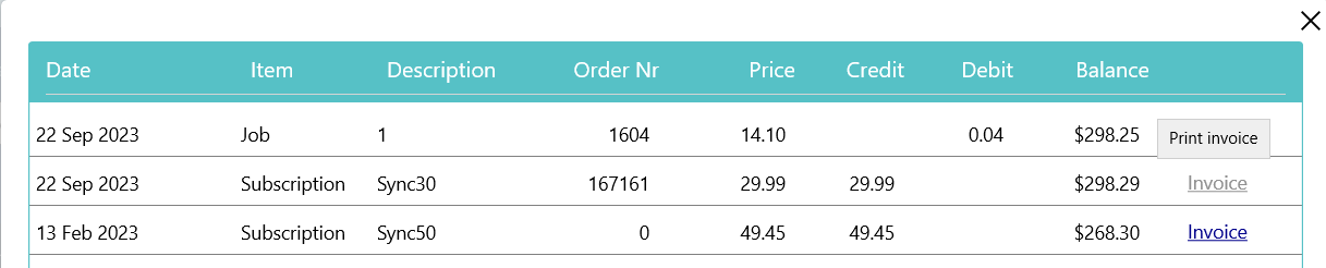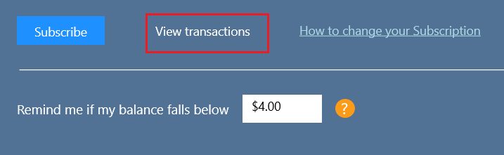 Your subscription transactions with rolling balance can be viewed by clicking on View transactions.