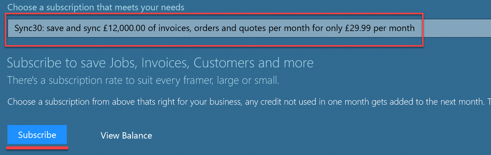 Your subscription balance is applied to transactions within FramR such as saving orders and sending sms.
