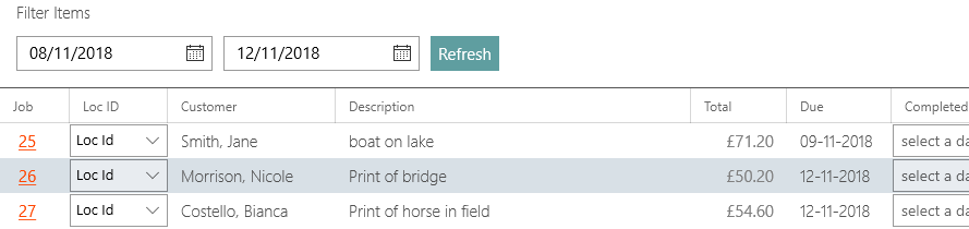 Any jobs completed in the workshop can now be marked here as completed. Once a job is marked as completed it will be progressed up into the Completed not Collected report