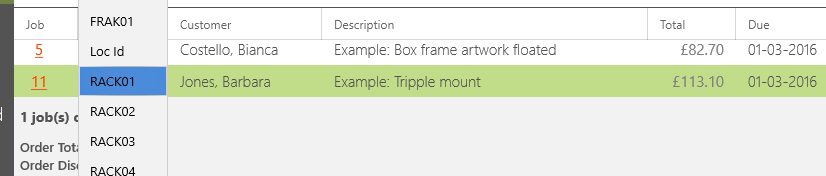 The location of the job can also be changed, say from a drawer location to a rack location, making it easy to locate the job when the customer comes to pick it up.
