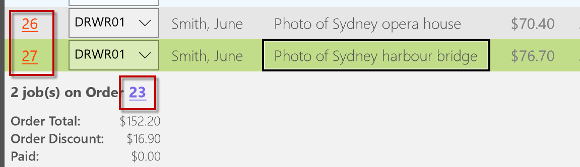 Clicking on the Job/ Order number will allow to to open and edit the document if required.