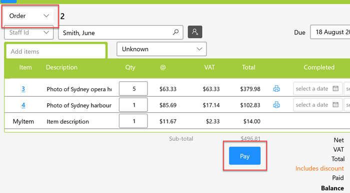Payments can be made on the Order page.