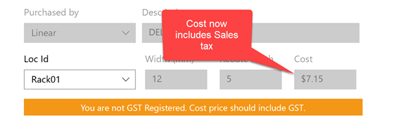 You will see a message on the stock page stating that you are not [Sales tax] registered and that the cost price includes the Sales tax amount.